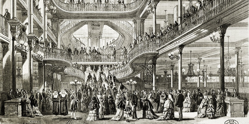 而百貨公司的開端,可以追溯到19世紀的歐洲(嘿對!突然進入歷史課的環節),當時歐洲邁入近代化,鐵路逐漸發達,讓跨區購物的可能性和動機大幅提高,消費文化和結構也隨之改變。一般公認世界最初的現代化百貨,是法國巴黎 1852 年開幕的蓬馬謝(「樂蓬馬歇百貨 Le Bon Marché」)不僅捨棄議價的模式,採定價銷售,顧客可以自由進出(不滿意還可以退換貨!)透過博物館式的大量展示,讓閒閒沒事的貴婦們忘卻日常經濟的理性,成日在百貨裡流連忘返。