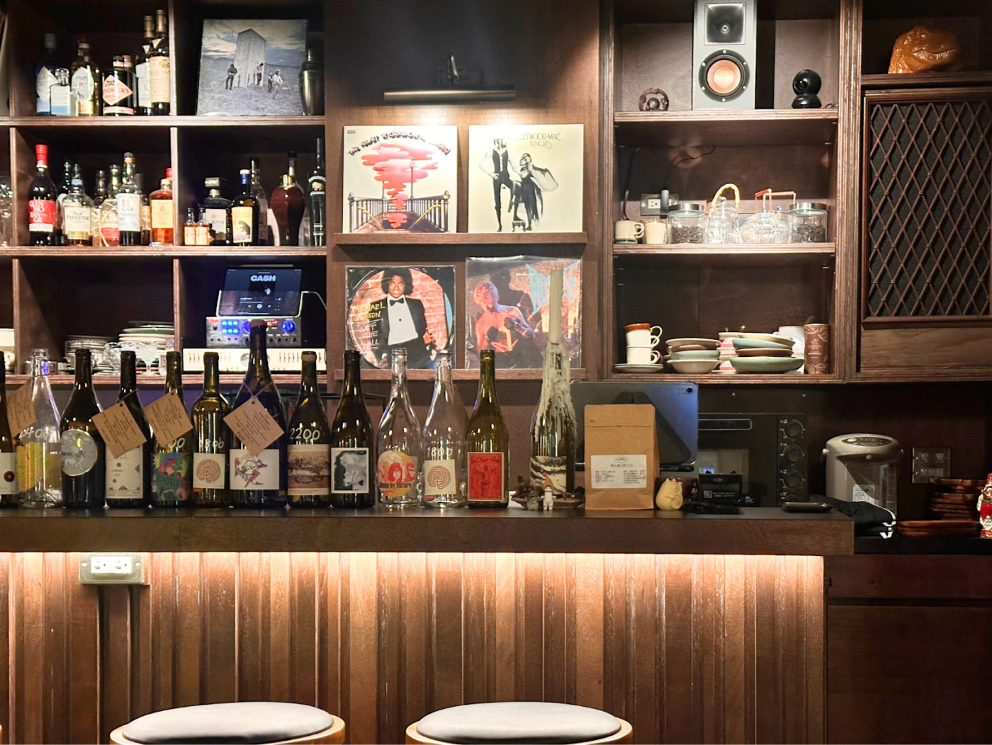 迷惘時刻,回想起大學時主辦的週末 house party,邀請朋友到家裡喝酒、吃東西的黃金歲月,他們決定結合兩人的專長與嗜好,開一間西式咖啡吧。比起生意,他們形容這家店是個充滿挑戰的 “passion project”。Ted 為此到酒吧鑽研調酒 2 年、Sarah 則是到日式串燒店學習外場接待的眉角,兩人將家中的古董傢俱和黑膠收藏都搬到店裡與大家分享,把客人當作好友般招待。在房價貴得可怕的台北苦苦尋覓,最終落腳大稻埕,這個選擇並非偶然,是出於他們對古城的鍾愛,也是因為 Ted 的阿祖過去在這一帶經營餅舖「寶香齋」的家族記憶。