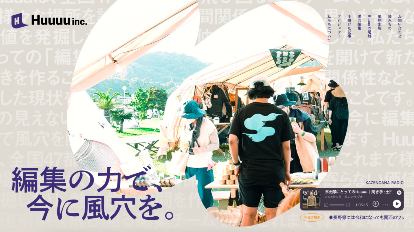 Huuu 取名源自於風(ふう)的日文讀音之一,遠離塵囂的氣息默默提升20趴。如徳谷先生所言,「兩天一夜、深入現場」是他進行採編工作的原則,以自身為載體,介入當地的人與人之間。